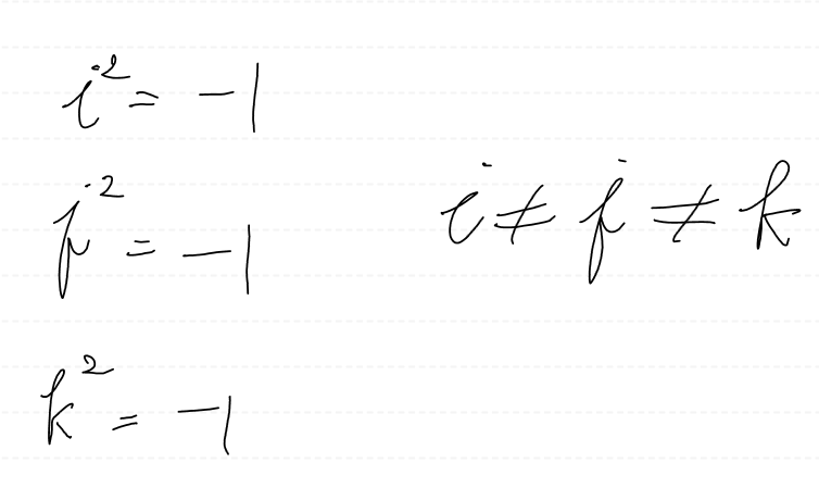 i, j, k 총 3개의 허수부를 사용하는 사원수 라는 체계가 등장하게 되었습니다.