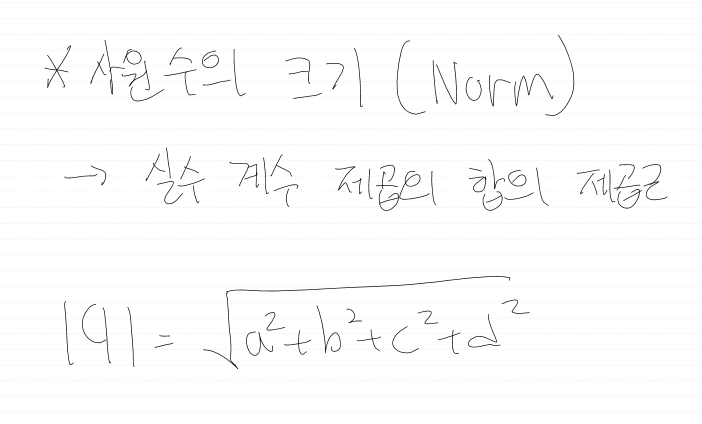 사원수의 크기는 실수 계수들의 제곱의 합의 제곱근으로 정의됩니다.