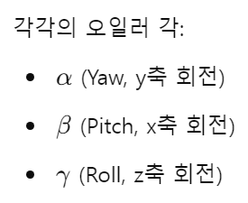 요, 피치, 롤에서 사용하는 각을 알파, 베타, 감마라고 할 때
