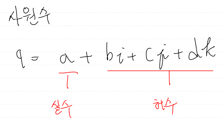 사원수는 실수부 1개와 허수부 3개로 이루어집니다.