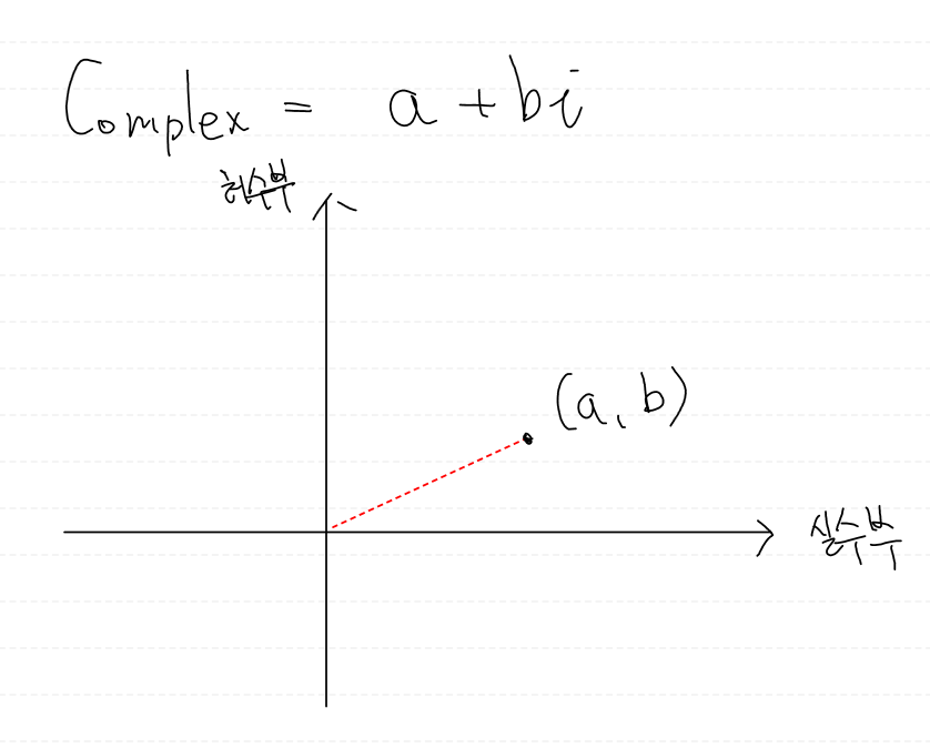 실수부를 Right, 허수부 Up 으로 하여 복소수를 2차원 평면으로 표현할 수 있고, 이를 복소평면이라고 합니다.