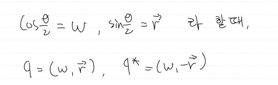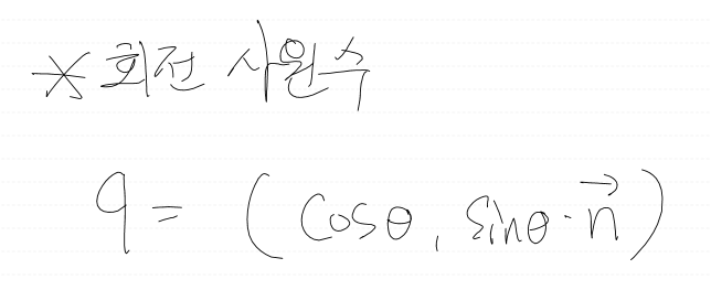 앞서 정리했듯 회전 사원수는 위와같습니다.