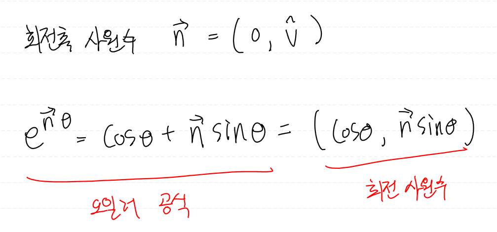 즉, 위와 같이 사원수 체계에서도 오일러 공식을 정리할 수 있습니다.