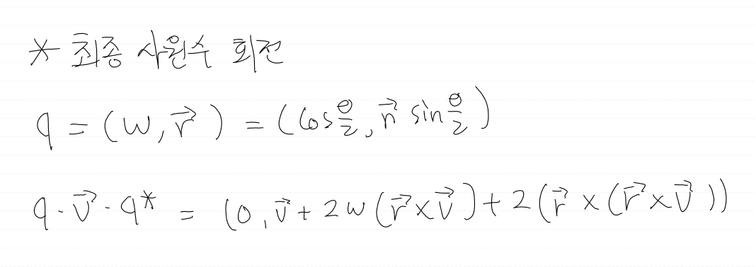 정리하자면 사원수 회전 공식은 다음과 같습니다.