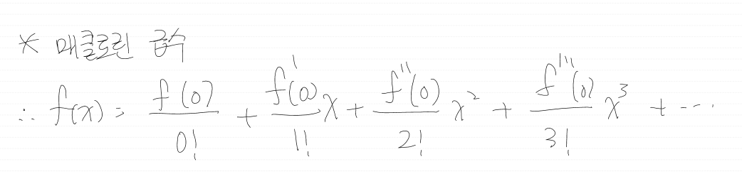 x0 = 0 에서 테일러 전개를 하는 경우, 이를 매클로린 급수라고 말합니다.