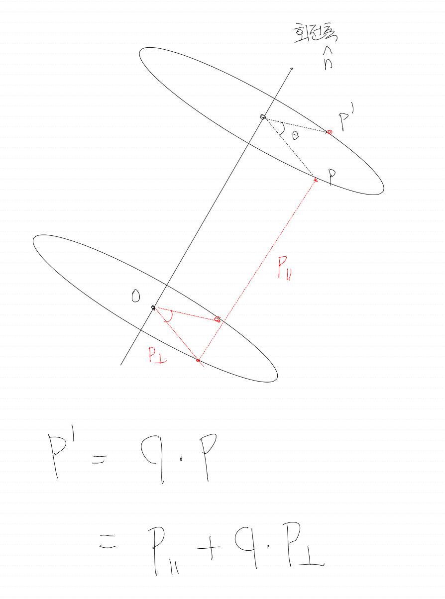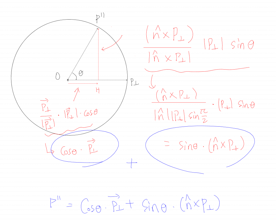그렇다면 수직성분을 세타만큼 회전시킨 벡터를 P'' 라고 할 때,