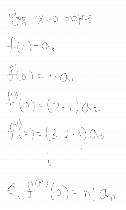 계수 an은 함수 f(x)의 도함수를 통해 위와같이 표현할 수 있습니다.