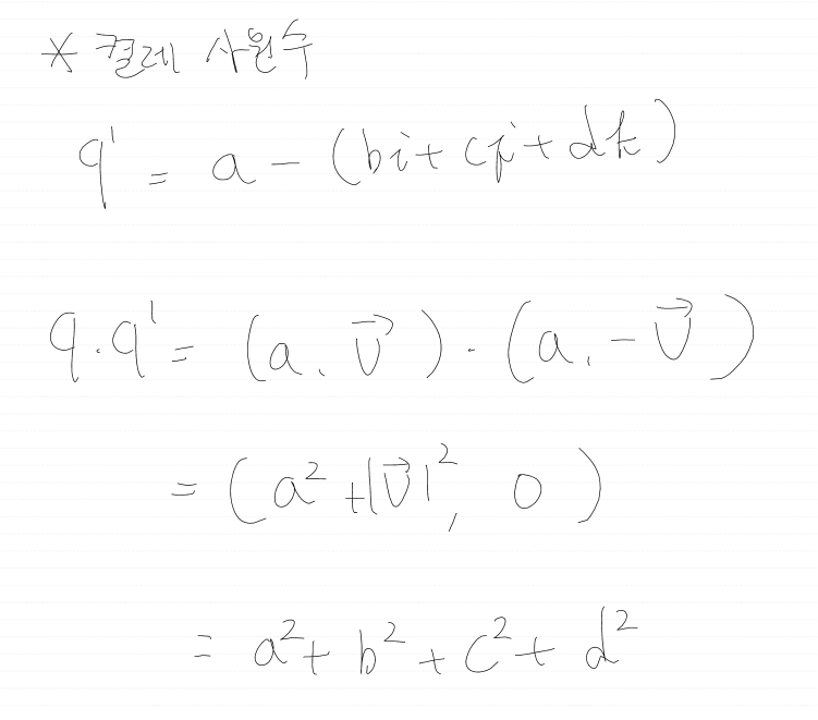 위와같은 사원수와 켤레 사원수로 나타낼 수 있습니다.
