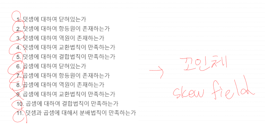 새로운 수 체계가 도입될 때, 그 체계에서 자유로운 연산을 정의하기 위해서는 체의 공리들을 얼마만큼 만족하는지 살펴보는 것이 중요합니다.