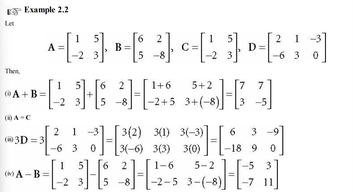 이제 행렬에서의 동등성, 덧셈, 스칼라 곱셈, 뺄셈을 정의한다.