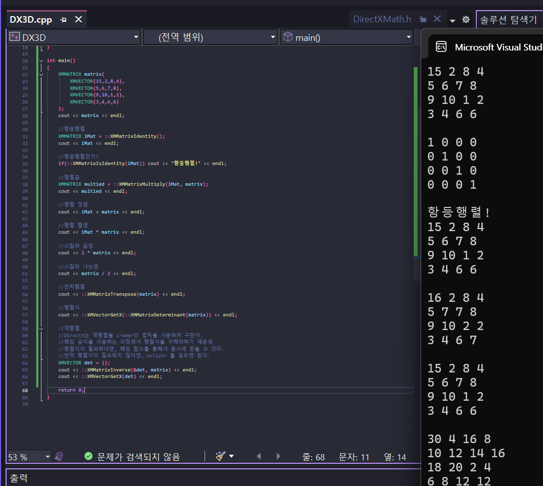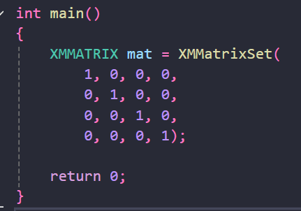 if(::XMMatrixIsIdentity(iMat)) cout << "항등행렬!" << endl;