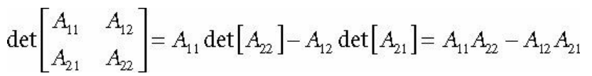 2x2 행렬의 행렬식은 1x1 행렬의 행렬식에 의해 정의된다.