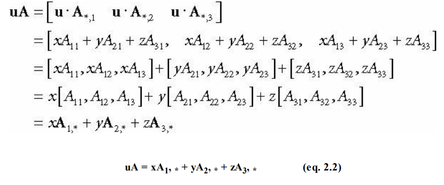 이 경우, uA의 경우 (1 x 3) 행렬과 (3 x 3) 행렬 사이의 곱으로 계산된다.