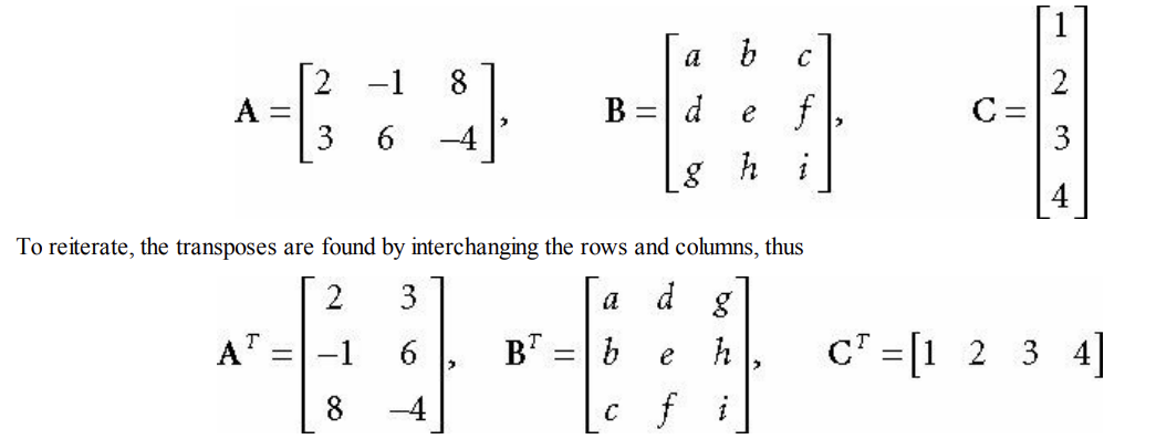 따라서 m x n 행렬의 전치는 n x m 행렬이다.