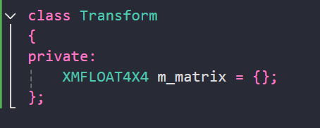 벡터 때와 마찬가지로, 행렬을 클래스 데이터 멤버로 저장할 때는 XMFLOAT4X4 타입을 사용할 것을 권장한다.