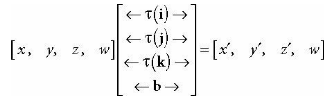 이러한 좌표 변환은 동차 좌표계를 사용하여 행렬로 나타낼 수 있다.
