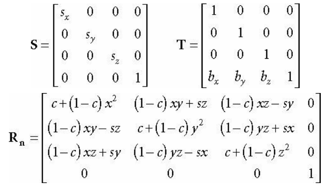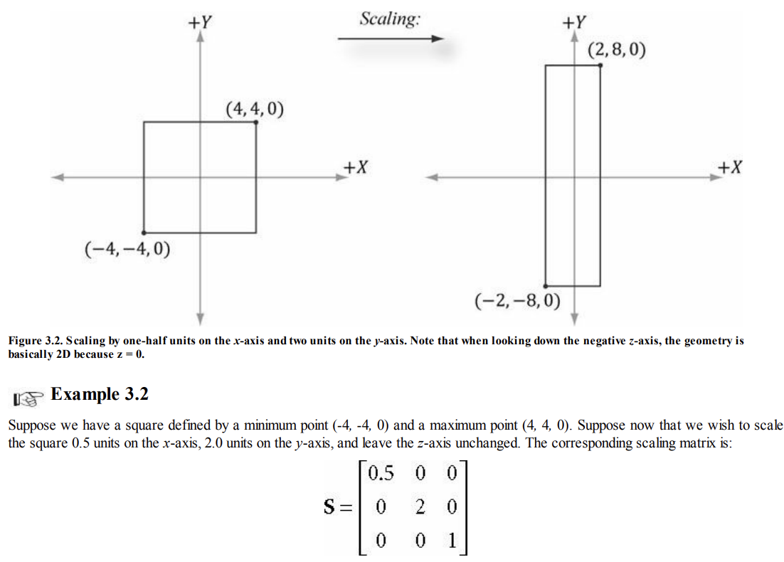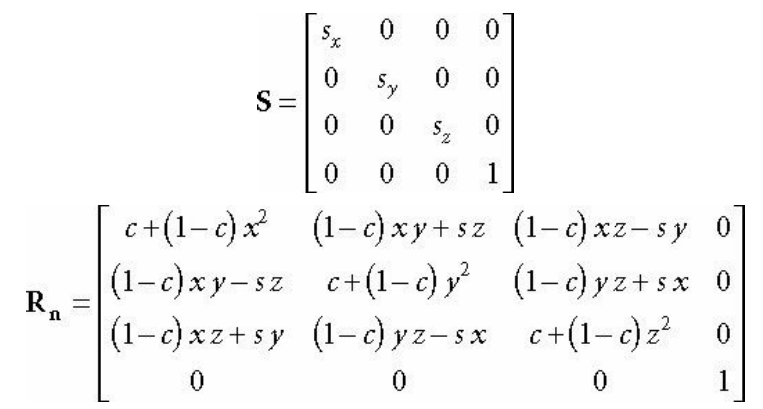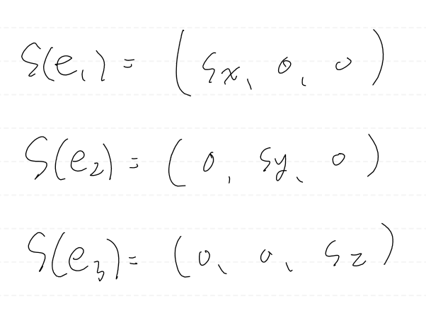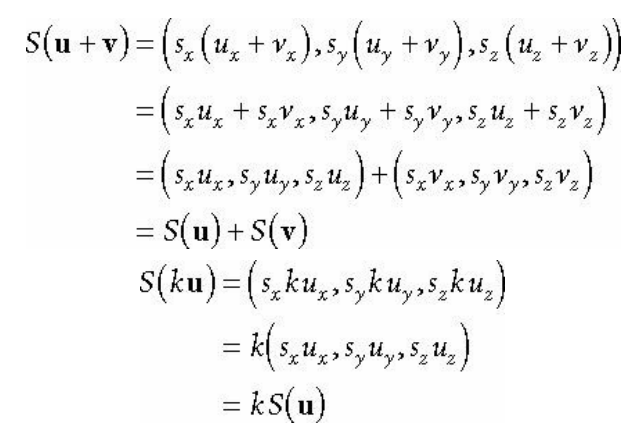 이 변환은 x축에서는 sx, y축에서는 sy, z축에서는 sz 단위로 스케일링한다.