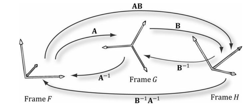 AB를 합성한 C는 F에서 H로의 좌표 변환 행렬이다.