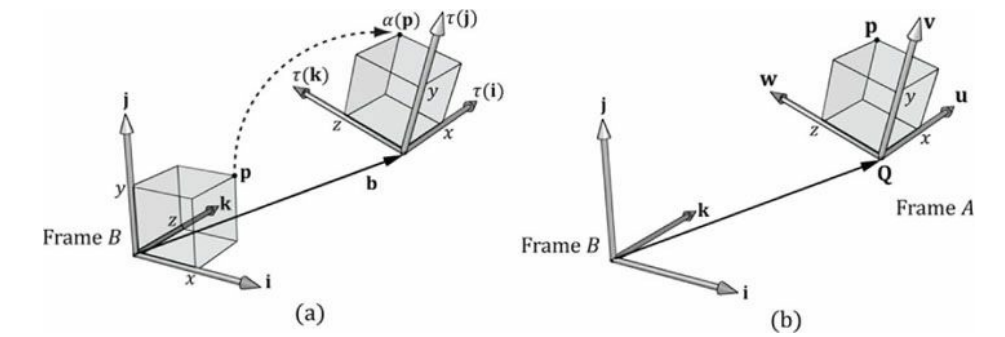 아핀 변환은 프레임 B에서 작업한 기하학 도형을 변환하는..