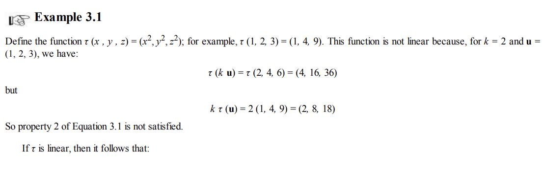 예를들어 위와 같은 변환 타우는 선형 변환이 아니라고 볼 수 있다.