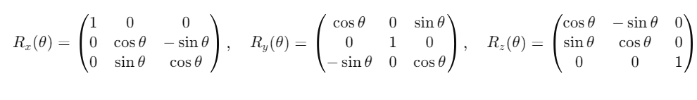 만약, 회전축을 x축 y축 z축 중 하나로 설정할 경우 식은 다음과 같이 간단해진다.