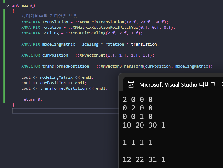 DirectXMath 변환 행렬 사용