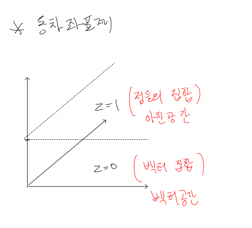 z = 1 인 평면은 점들의 집합인 아핀 공간