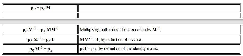 만약, 좌표 변환 행렬 M이 가역적이라면, A좌표계에서 B좌표계로의 변환이 아닌