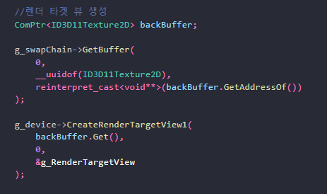 1. GetBuffer를 이용하여 스왑 체인의 백 버퍼에 대한 포인터를 얻는다.