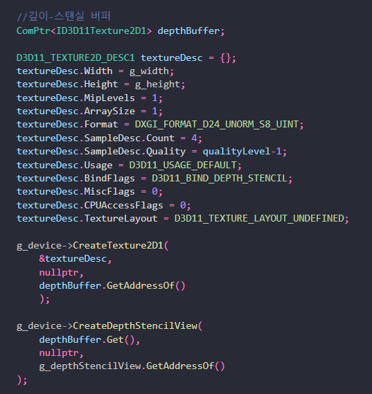 깊이 스텐실 버퍼 및 뷰 생성