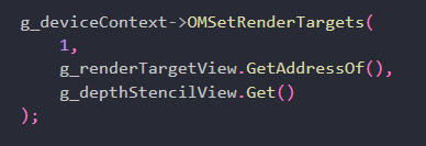 백 버퍼와 깊이 버퍼에 대한 뷰를 생성했으므로, 이제 이 뷰들을 파이프라인의 OM 단계에 바인딩하여 리소스를 렌더 타겟 및 깊이/스텐실 버퍼로 사용할 수 있다.
