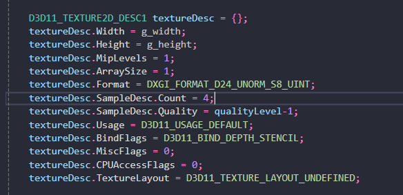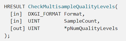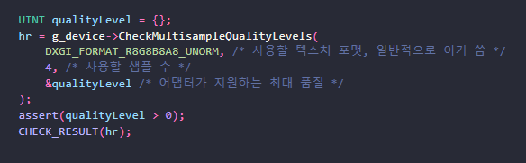 (멀티샘플링 수와 같은 일부 사항은 Direct3D 11 하드웨어마다 다를 수 있으므로 조회가 필요하다.)