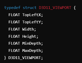 그리는 백 버퍼의 하위 사각형 영역을 뷰포트라고 하며, 이는 다음과 같은 구조체로 설명된다.