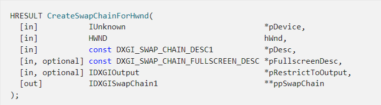 ms에서는 Direct3D 11.1 부터 해당 함수를 사용하여 스왑 체인을 만드는 것을 지양하라고 한다.