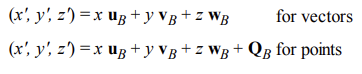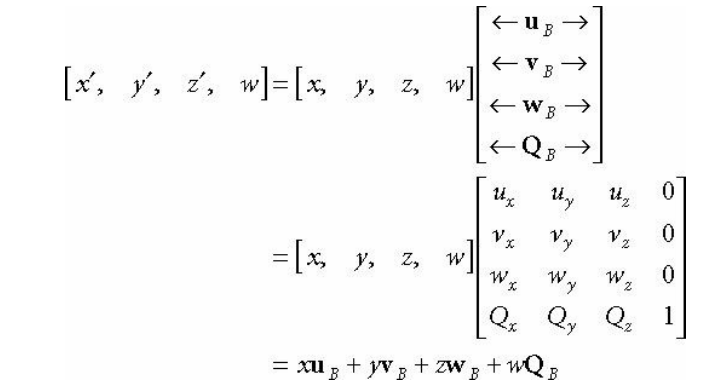 바로, 벡터 좌표계 변환과 점 좌표계 변환을 하나의 식으로 나타낼 수 있게 된다.