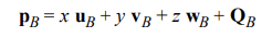 이 때 사용하는 기저 벡터는 좌표계 B 입장에서의 바라본 좌표계 A의 기저 벡터들이다.
