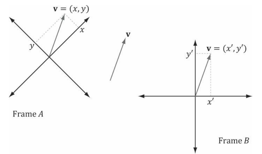 좌표계 A에서 벡터 v가 위 같이 정의되어 있다고 해보자.