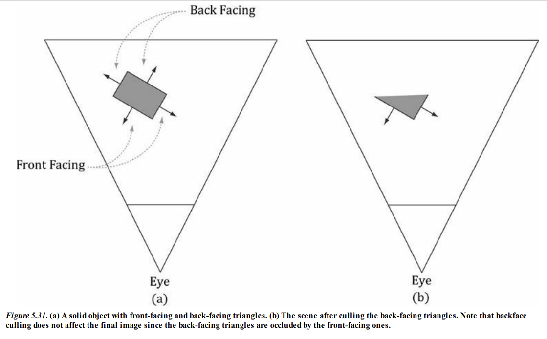 카메라는 실체 객체의 뒷면 삼각형을 보지 못한다. 이는 앞면 삼각형이 뒷면 삼각형을 가리기 때문이다.
