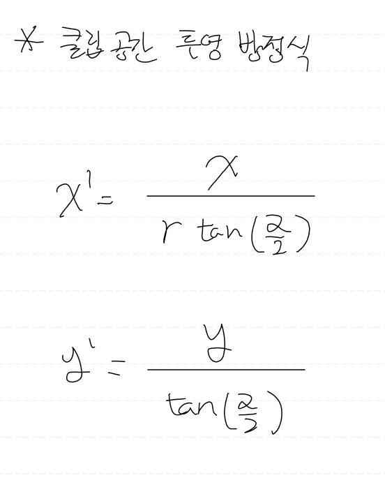 그렇기 때문에 수학적 성질을 이용하여 뷰 공간에 있는 무게중심좌표를 구하고자 한다.