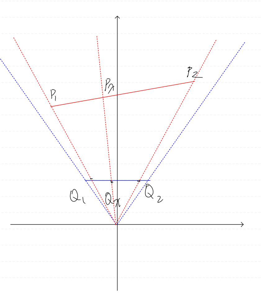 어떤 직선을 투영 평면으로 원근 투영한 예시를 보도록 하자.