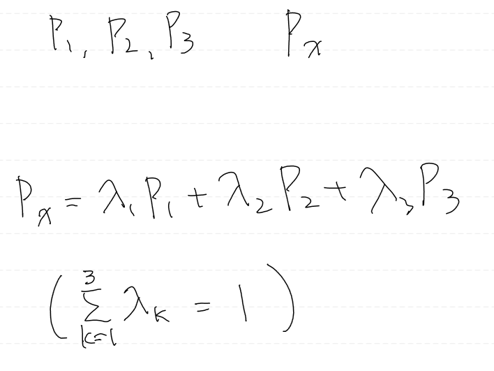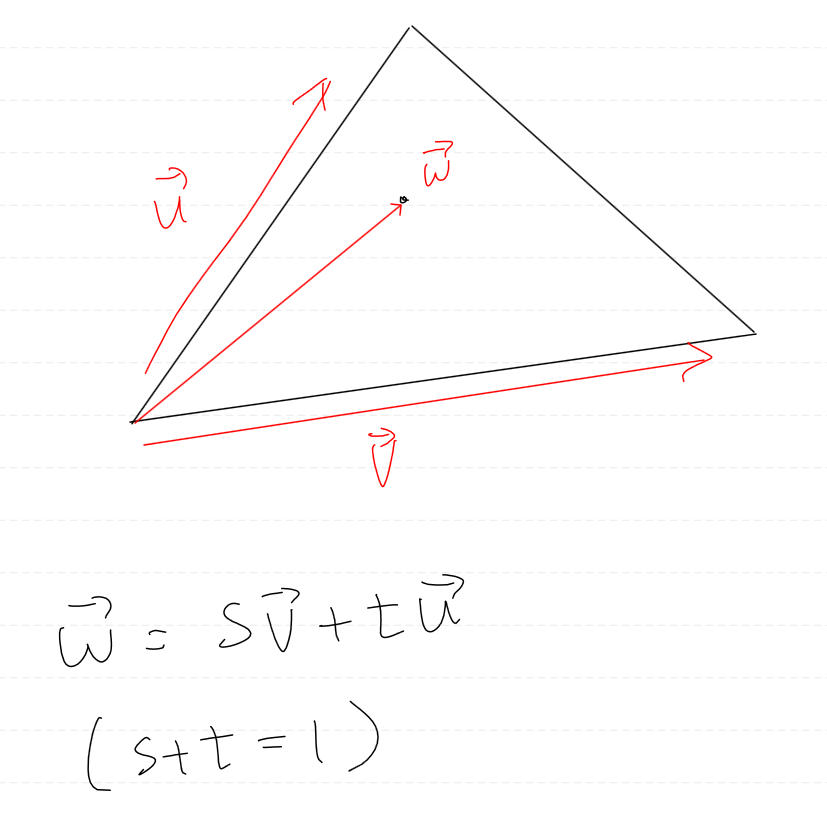 삼각형 내부에 있는 점은 위 컨벡스 결합식을 만족해야 한다.