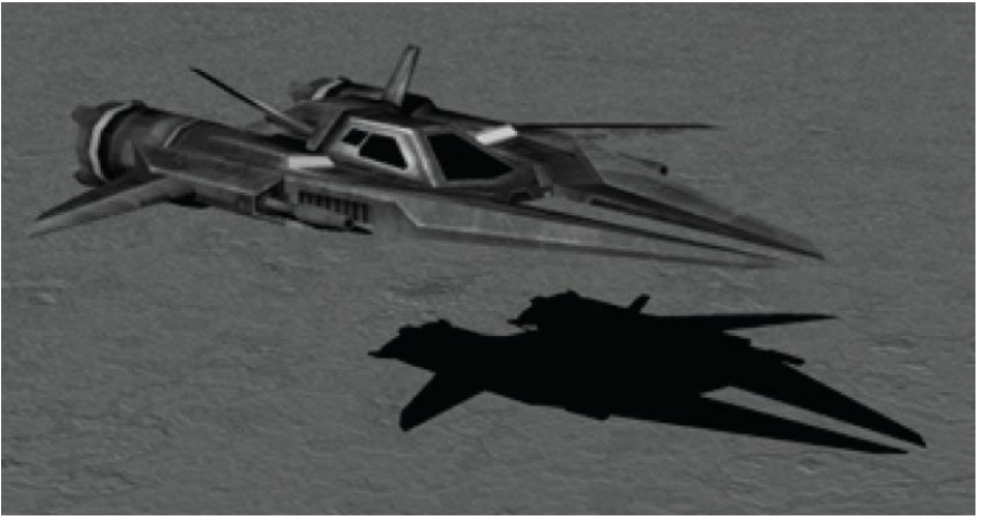 마지막으로 우주선과 그 그림자를 보여준다.