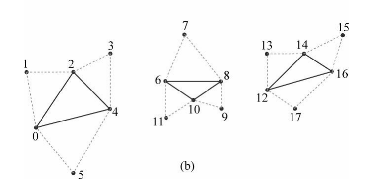 우리 시점에서 오니쪽 삼각형을 시계방향으로 정렬되어 있고, 오른쪽 삼각형은 반시계방향으로 정렬되어 있다.