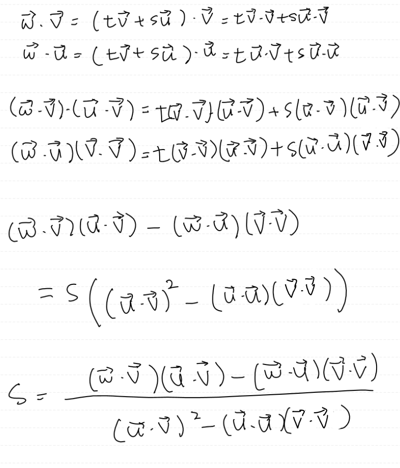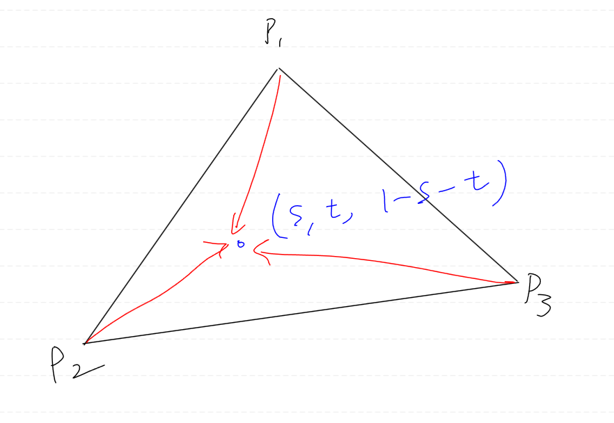 여기서 얻어낸 s, t, 그리고 마지막 계수 (1 - s - t)를 이용하면