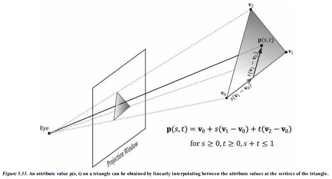 뷰포트 변환 후, 삼각형을 덮고 있는 각 픽셀에 대해 이러한 속성들을 보간해야 한다.