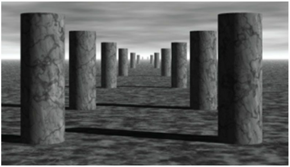기둥들은 실제로 모두 같은 크기지만, 관찰자로부터 깊이가 커질수록 점점 작아 보인다.