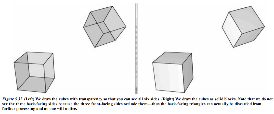 기본적으로, Direct3D는 시점에 대해 시계방향으로 정렬된 삼각형을 앞면으로, 반시계방향으로 정렬된 삼각형을 뒷면으로 처리한다.