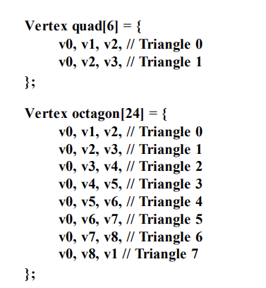 삼각형은 버텍스들에 의해서 정의된다.