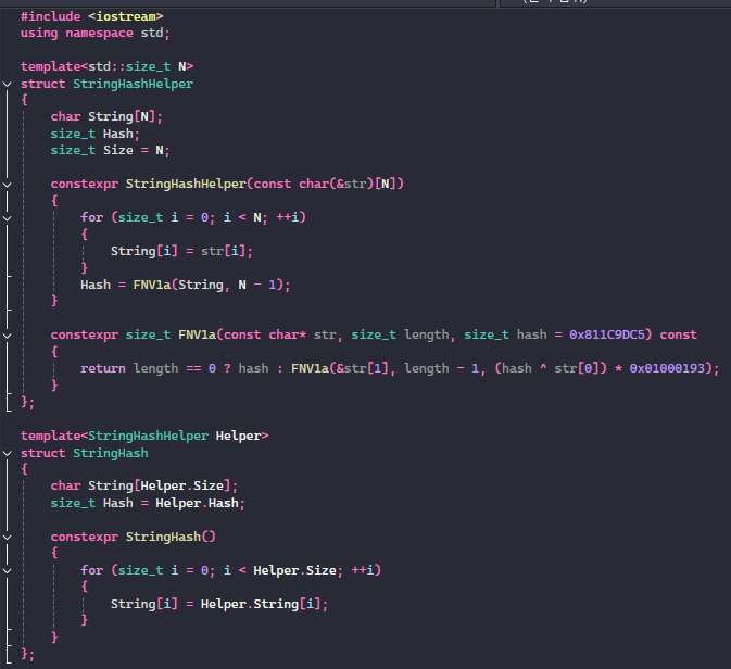 constexpr size_t FNV1a(const char* str, size_t length, size_t hash = 0x811C9DC5) const