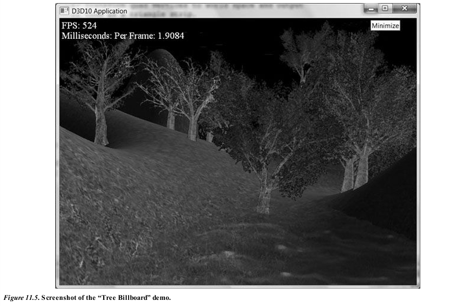 빌보드 예제에서는 지오메트리 쉐이더가 이 ID를 사용하지 않지만, 프리미티브 ID를 출력 정점에 기록하여 픽셀 쉐이더로 전달한다. 픽셀 쉐이더는 이 프리미티브 ID를 사용해 텍스처 배열에 접근하며, 이는 다음 섹션에서 설명한다.
